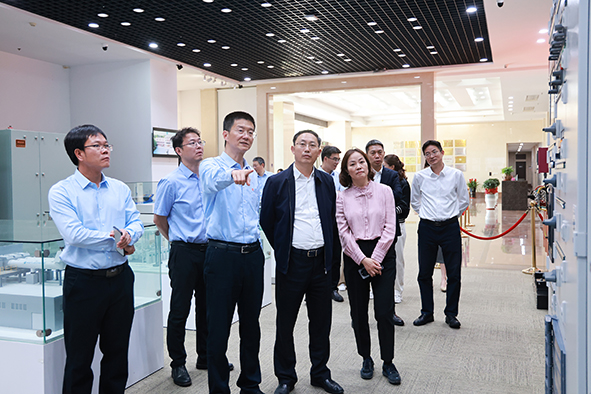 郭奔胜一行先参观了大全集团展厅,听取了企业经营、产业布局、发展战略、产品研发、科技创新、数字管理、智能制造、党建引领等方面情况的介绍,接着实地察看了江苏大全凯帆开关股份有限公司和镇江默勒电器有限公司两个省级智能制造示范工厂,深切感受企业实施智改数转后的巨大变化,充分了解企业高质量发展举措和实践新质生产力的路径。