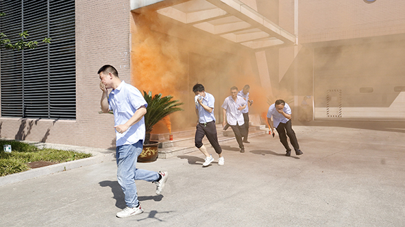 南京大全投资总经理做演习前动员讲话,强调厂房内的电气线路敷设要符合安全规范,临时使用各类用电、动火设备时,务必落实安全操作规程;保障安全通道畅通,确保厂区内消防设施、器材的完好有效性。