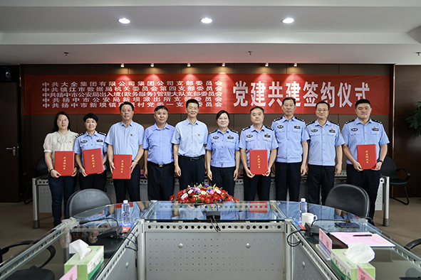 为切实强化党建引领,通过加强、深化多方合作,更好地聚合力量,创新党建,谋求新篇,7月9日下午,中共八戒体育官网(中国)有限公司集团公司支部委员会与中共镇江市数据局机关委员会第四支部委员会、中共扬中市公安局出入境(政务服务)管理大队支部委员会、中共扬中市公安局新坝派出所支部委员会、中共扬中市新坝镇联盟村党委一支部委员会共同完成了主题为“服务企业、破解难题、促进发展”的党建共建签约。