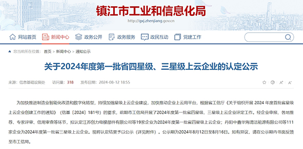 近日,江苏省工业和信息化厅公布2024年度首批省星级上云企业认定名单,镇江默勒电器有限公司成功入选江苏省三星级上云企业。