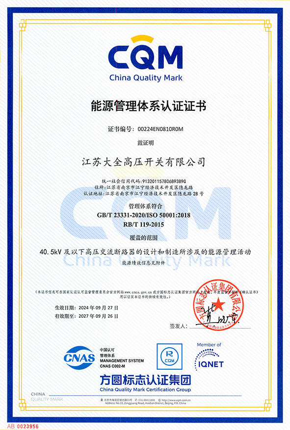 此次是大全高压开关首次认证通过能源管理体系,这意味着公司管理体系建设又迈上了新的台阶。未来,大全高压开关将进一步深挖生产系统节能降耗潜力,全方位助力高质量绿色低碳发展。