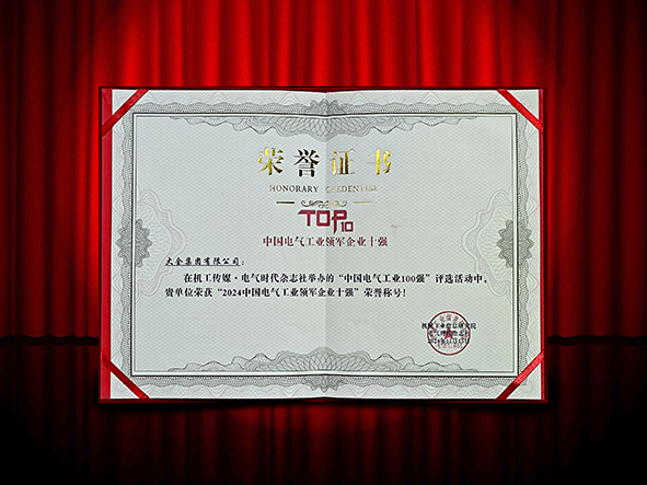 大全集团再度荣膺中国电气工业百强、领军企业十强