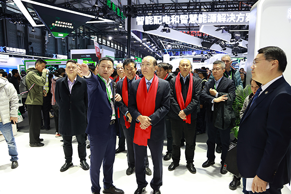 长期以来,大全集团坚持“诚信、敬业、创新”的经营理念,深耕主业,聚力创新,取得了诸多研发成果和国家级荣誉。展会首日,大全集团展位宾客如云,络绎不绝,迎来一波又一波观展热潮。上午11点,中电联理事长、全球能源互联网发展合作主席辛保安等领导一行莅临大全集团展位参观指导,对大全集团精湛的制造工艺、高标准的技术要求、具有前瞻性的行业布局和勇于攀登科技创新“制高点”的魄力给予高度认可。