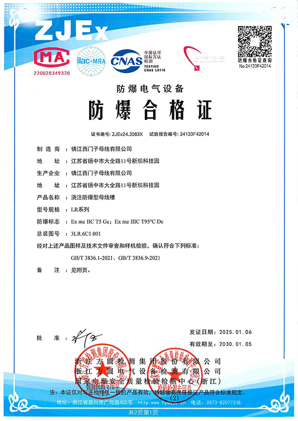 这一证书的获得,标志着镇江西门子浇注母线产品已经满足了国家对于防爆电气产品的各项标准和要求,为产品的广泛应用和安全生产提供了有力保障。