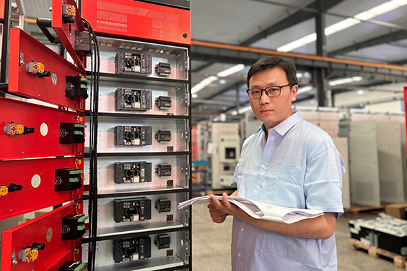 在非洲某项目,他直面疟疾感染、气候异常、电压不稳等多重挑战,以高效的前期技术指导为基础,与公司技术团队密切沟通,提前做好现场配电柜技术特点、接线规范、操作要求的培训,巧干实干,最大化提升现场配合效率与服务质量,专业能力得到客户高度认可。在越南某项目,400面配电柜服务周期仅一个多月,他白天配合安装,晚上跟进送电调试并做好次日安排,近一个月连轴转,每天仅能休息四五个小时,故障排除率却高达99.8%。近期,周元文刚结束为期近一年的刚果金服务回到国内,他结合服务实践,总结出多项产品改善和服务效率提高的建议,并积极推进落实,然后马不停蹄赶赴下一个项目现场。这是他的工作常态,也是大全配电人的缩影和写照。