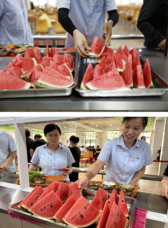 一块西瓜,一份清凉,也是一份情谊。通过融入传统节气文化,大全集团各园区不断丰富员工的用餐体验,提升工作幸福感。接下来,食堂还将结合传统节日,持续推出更多暖心服务,让员工在忙碌的工作中感受到来自企业的温度与关爱。