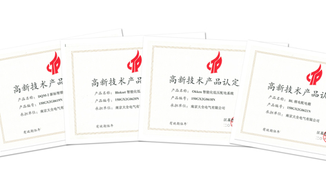 近日,南京大全电气科技创新工作取得新成果,Blokset低压配电柜、Okken低压配电柜、BL核电配电箱、DQM2.0低压配电柜4项产品顺利通过江苏省科技厅认定,荣获“高新技术产品”称号;