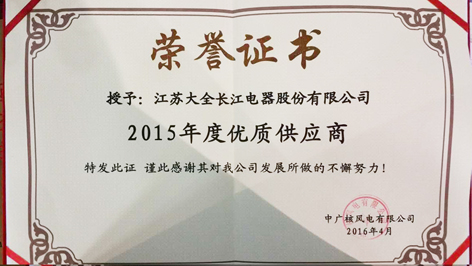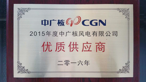 近日,长江股份在300多家供应商中脱颖而出,被中广核风电公司评为2015年年度优质供应商。