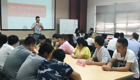 6月23日,镇江太阳能组织开展2016年安全知识竞赛,旨在通过竞赛活动进一步巩固安全知识,宣传安全理念,营造安全文化氛围,提高员工的安全意识。比赛分为必答题、抢答题、风险题、比划题四个环节,来自不同部门的8组选手经过激烈角逐,最终动力部摘得桂冠。